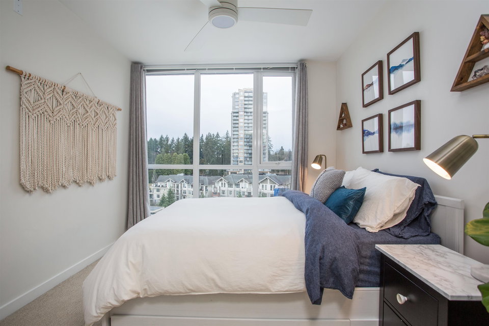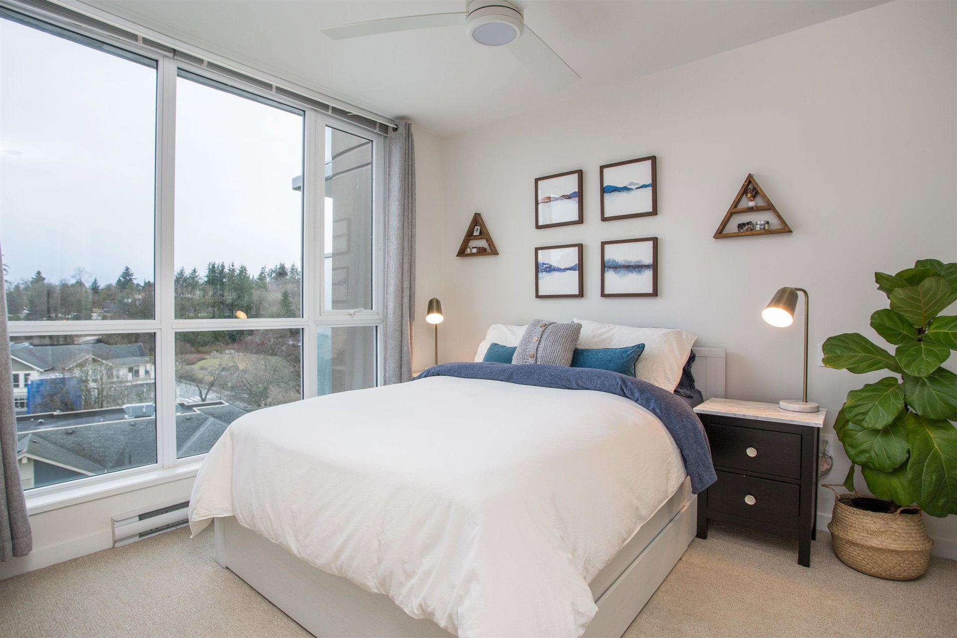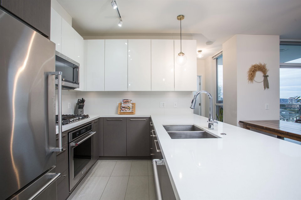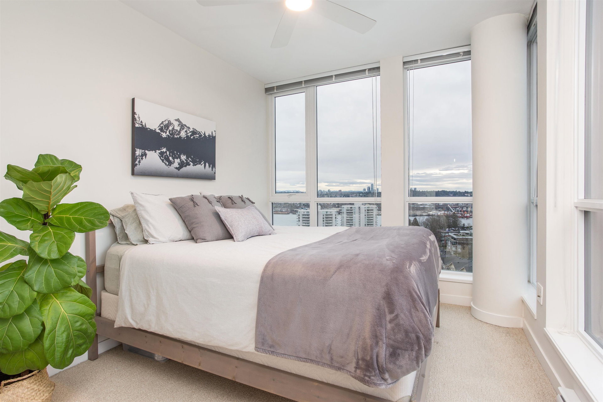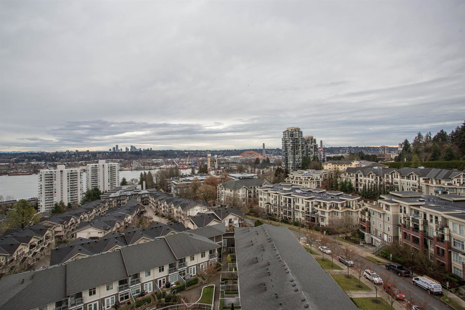 THIS ONE HAS IT ALL! An 05 unit, rarely available 2 bedroom and Den. 180 degree panoramic views of New Westminster, Mt. Baker, The Fraser River & Queens Park, through floor to ceiling windows. Gourmet kitchen with a gas cooktop, soft close cabinetry & quartz countertops. Large master with walk-in closet & organizers. Two full bathrooms. Comes with 2 parking spots and a large, external storage locker & large in-suite storage room. EV Charging now available. Resort-like amenity package including an outdoor pool, hot tub, fitness centre, yoga room, theatre room, games room, workshops, bicycle lockers, guest suites, concierge at front desk, community gardens, walking trails. Open House Saturday February 11th 1:30-2:30pm.