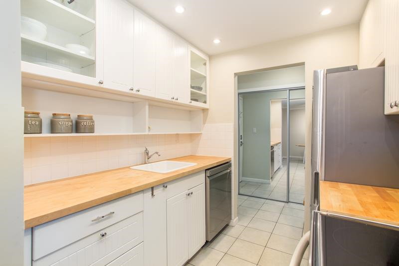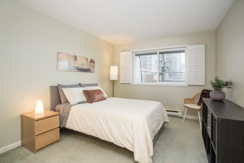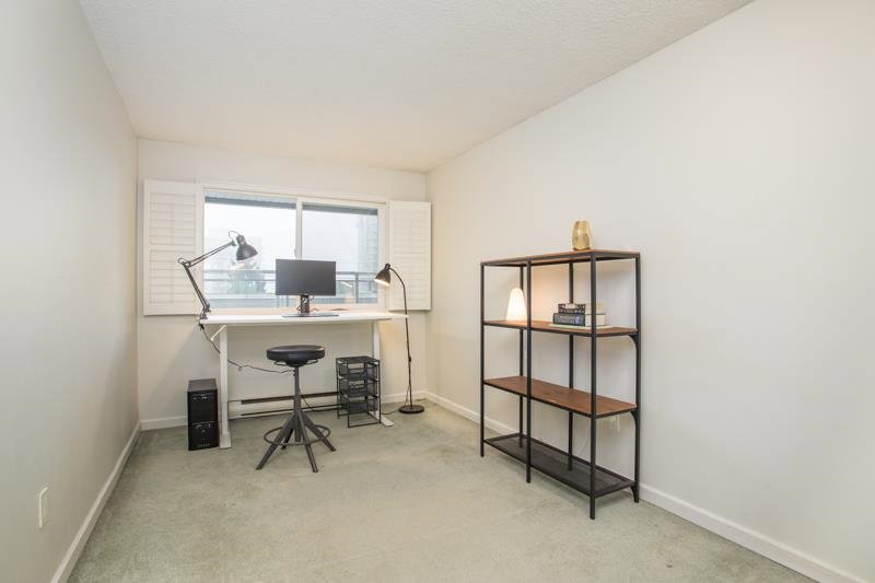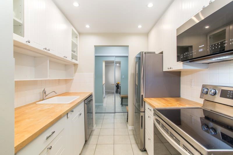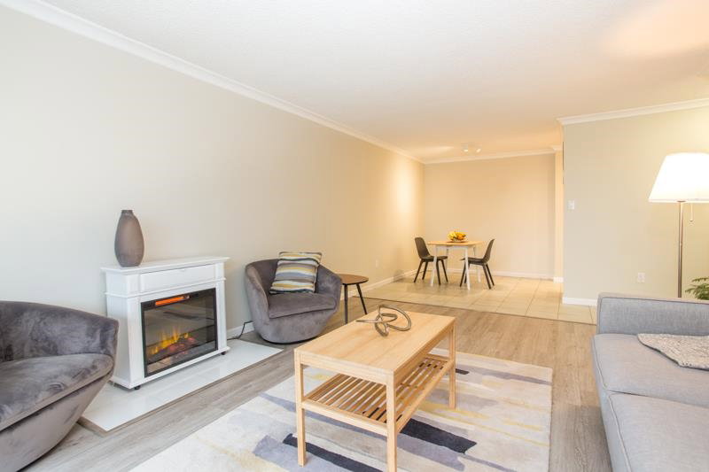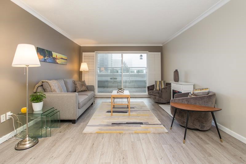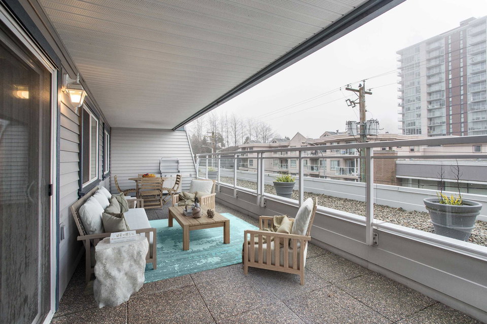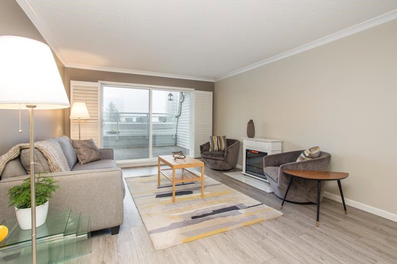 This is a wonderfully bright and spacious 2 bedroom condo at Harbourview. Southern exposure fills the space with light. Tasteful interior updates include: Kitchen cabinets and countertop and appliances are basically brand new. Large living room has laminate flooring and opens up to a massive 334 sqft south facing patio. Both bedrooms can easily accommodate a queen sized bed. Insuite laundry with combo euro style washer/dryer. The building has also had extensive upgrades: Rainscreened in 2005 with new windows and balconies, re-piped 2005, elevator 2015. Located in downtown New West only a short walk from skytrain, shops and restaurants.