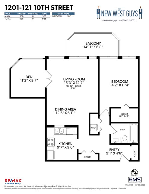 Looking for a 1 bedroom condo with a properly sized den that could be used as a home office or spare bedroom? At 988 sqft, you’ll have more than enough room for all of your furniture & the den provides excellent flexibility. There’s no shortage of natural light, large windows showcase stunning park + city views or enjoy the river from the deck. The open living & dining room are spacious & have been updated with laminate flooring that flows into the den & bedroom. The building has had numerous updates: plumbing, elevators, fire panel & currently the roof is being replaced. Located right on the edge of downtown New West, you are only steps away from all amenities including: Skytrain, Simcoe Park & community garden, dog park. 1 parking + large storage locker.