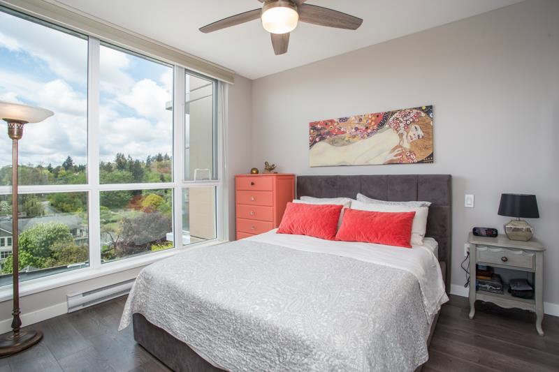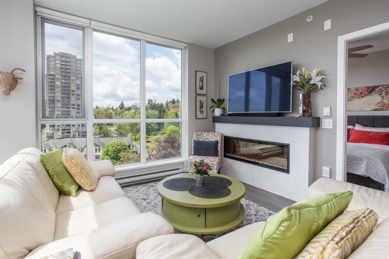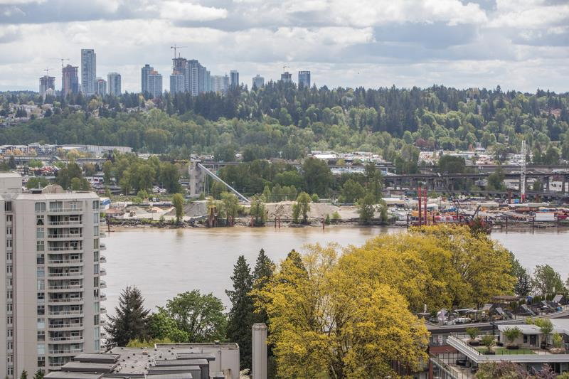 THIS ONE HAS IT ALL! An 05 unit, rarely available. 180 degree panoramic views of New Westminster, Mt. Baker, The Fraser River & Queens Park, through floor to ceiling windows & 9 ft ceilings. Gourmet kitchen with a gas cooktop, soft close cabinetry & quartz countertops. Designer paint throughout, new blinds, light fixtures, upgraded flooring, custom fireplace. Large master with walk-in closet & organizers. Two full bathrooms. Comes with a large, external storage locker & large in-suite storage room. Resort like amenity package including an outdoor pool, hot tub, fitness centre, yoga room, theatre room, games room, workshops, bicycle lockers, guest suites, concierge at front desk, community gardens, walking trails.