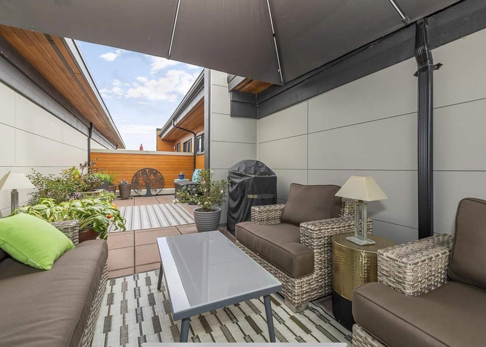 Welcome to Portage at Port Royal, where space, style, and lifestyle come together. This rare 3 bedroom, 3 bathroom loft style home offers a bright open main level with two generously sized bedrooms, including a serene primary retreat with walk-in closet and ensuite. The chef inspired kitchen features a gas cooktop and built-in espresso machine, perfect for daily living and entertaining. Upstairs, the versatile loft includes a motorized privacy partition and ensuite, ideal as a third bedroom, media room, or guest suite. Enjoy an expansive private rooftop patio plus a second main level patio. Includes 2 parking stalls, storage locker, and ample in-home storage. Steps to the riverfront boardwalk, QtoQFerry, parks, schools, transit, restaurants, and Costco. Open House Saturday March 7th 1-2pm